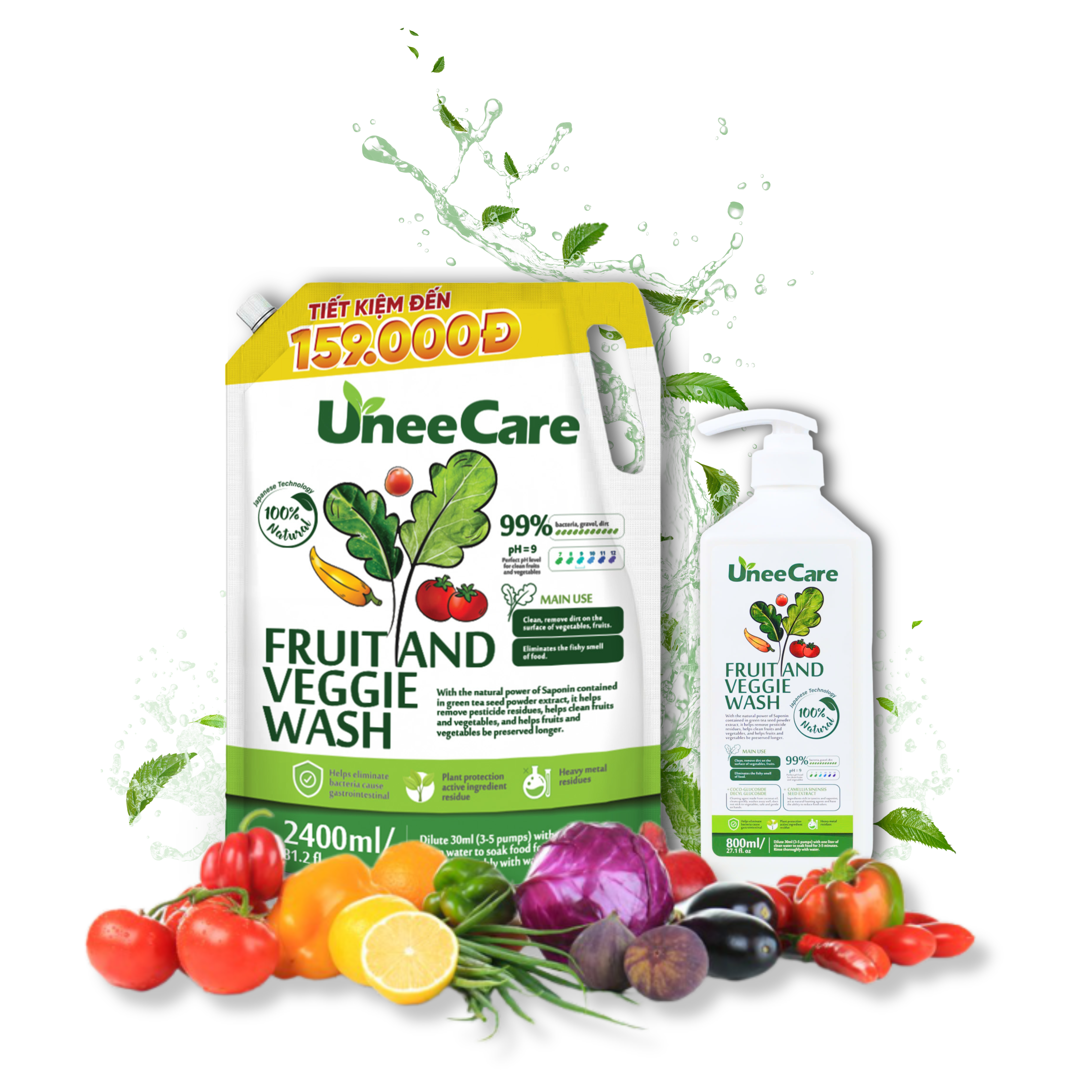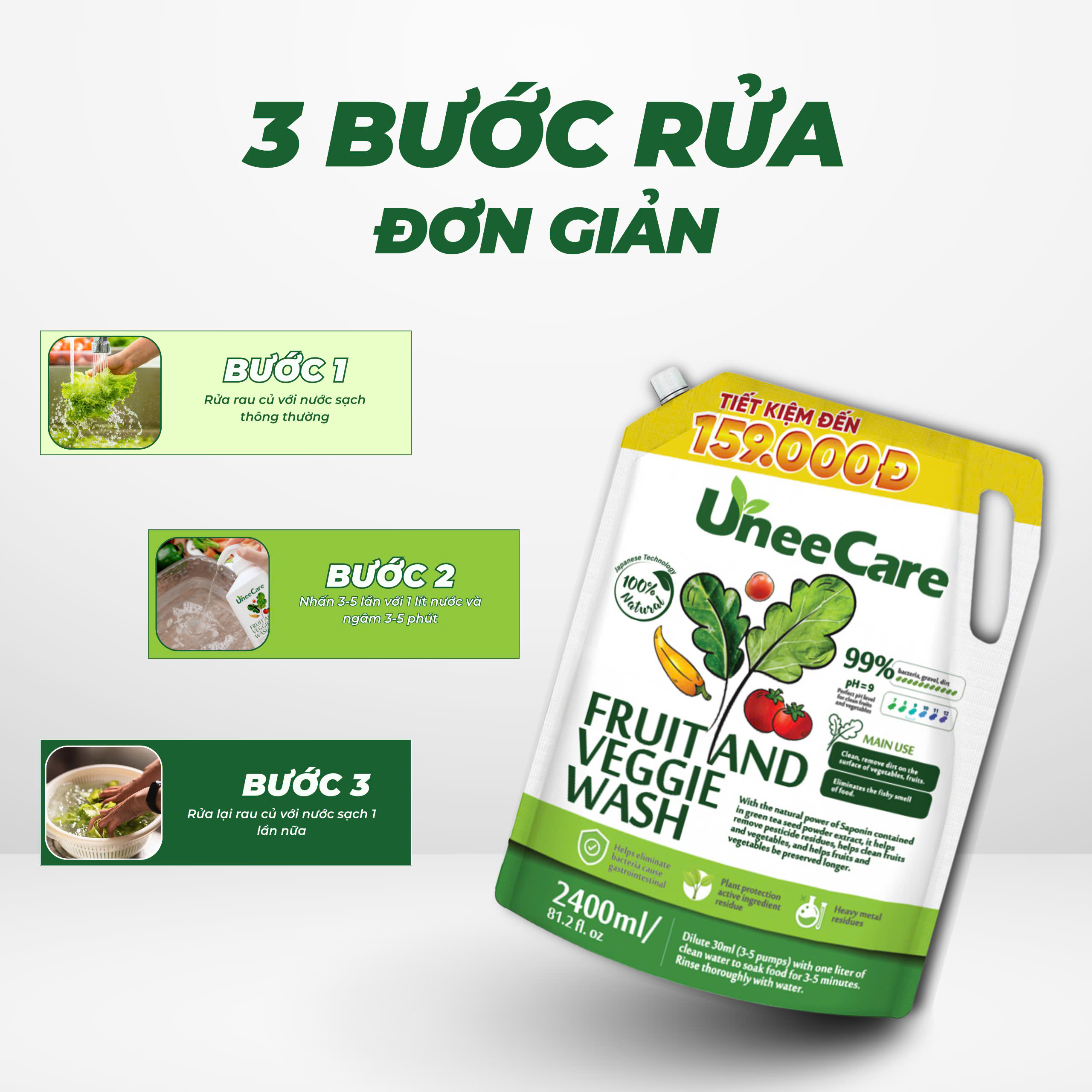 Túi Nước rửa rau củ quả UneeCare là giải pháp làm sạch thực phẩm an toàn – dịu nhẹ – đến từ thiên nhiên, giúp bạn yên tâm chăm sóc bữa ăn cho cả gia đình mỗi ngày.