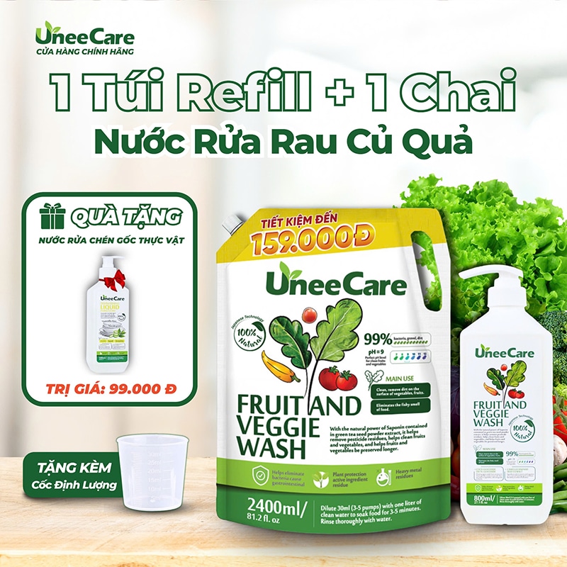 Túi Nước rửa rau củ quả UneeCare là giải pháp làm sạch thực phẩm an toàn – dịu nhẹ – đến từ thiên nhiên, giúp bạn yên tâm chăm sóc bữa ăn cho cả gia đình mỗi ngày.