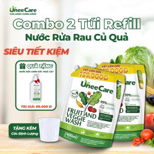 Combo 2 Túi Refill 2.4L Nước Ngâm Rửa Rau Củ UneeCare